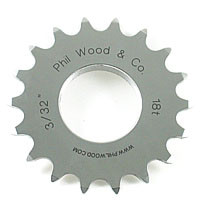 Phil Woods stainless steel track cogs are available in 1/8″ and 3/32″ widths, from 12 to 22 teeth. The cog threading is 1.370″ x 24 tpi. Our track cogs are manufactured from solid stainless steel bars and are heat-treated three separate times. In order to show that our cog is not plated, we polish and laser etch the outer face of each cog while leaving the inside face in its natural state.