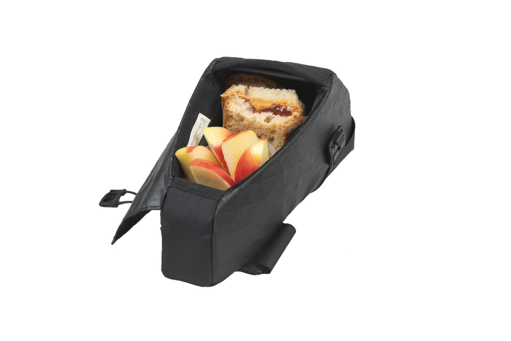 Named after it’s calorie holding capacity, the Mag-Tank 2000’s tapered wedge shape gives it impressive volume while still offering a lean profile at it’s base. A locking cam provides a secure front attachment, while still utilizing the adjustable daisy chain to allow clearance from stem clamp bolts. The bag’s closed cell foam padded base and stiffened side panels provide protection and structure for food and electronics with the ease of fast, one handed access.