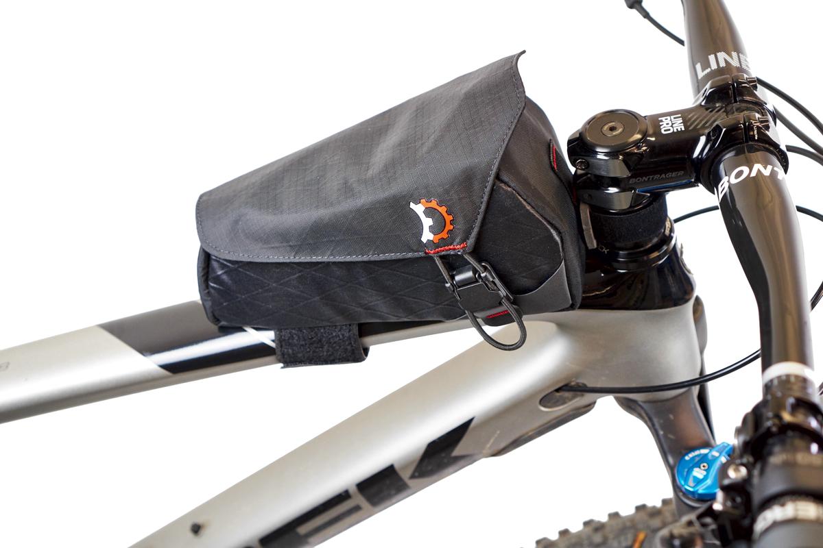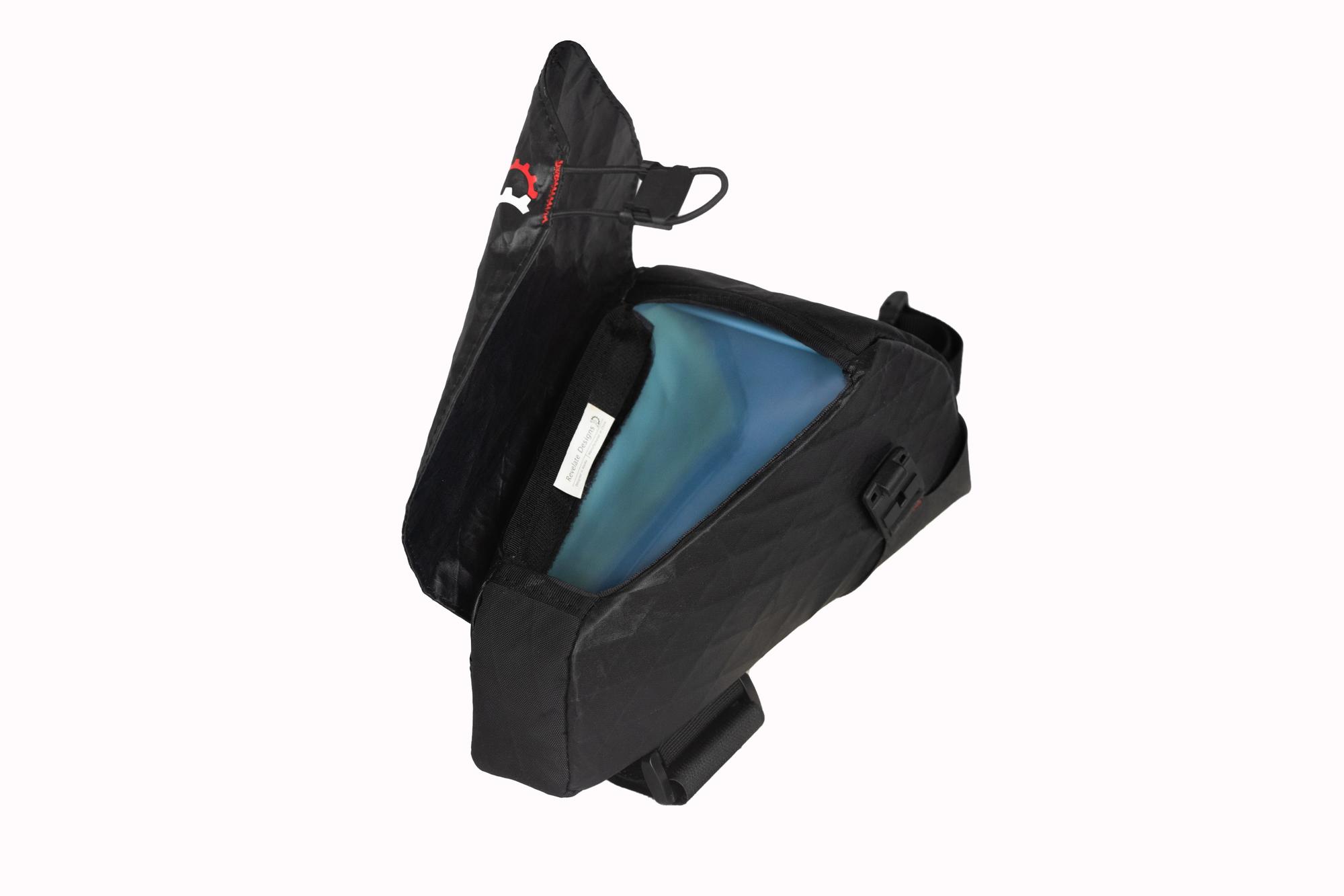 - Beefy top tube strap has grippy material and a double back wrap for bomber stability