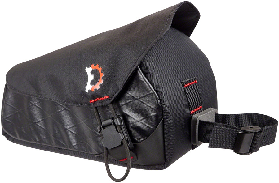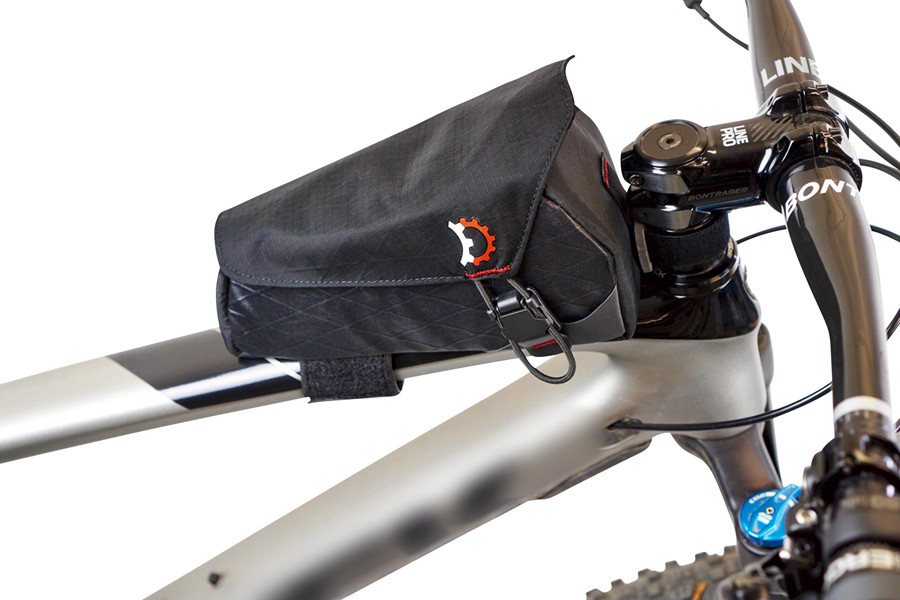 Please note - While the cover to this bag is designed to shed rain and spray, due to the large panel opening it is not a sealed bag or waterproof bag. Additionally, while the closure is secure there is the possibility that small or loose objects can come out of the bag from rough trails or lying the bike on it's side. We recommend small items like loose keys and gummy bears are put in a ziplock.