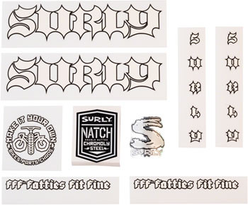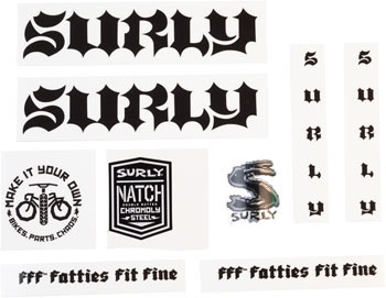 - Each set includes decals for the down tube, chainstays, and fork blades, a Surly Make It Your Own seat tube icon, Surly headbadge, and a ’Natch frame sticker