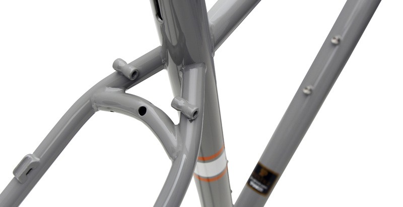 – Tange Prestige heat-treated butted CrMo steel; butted CrMo rear end