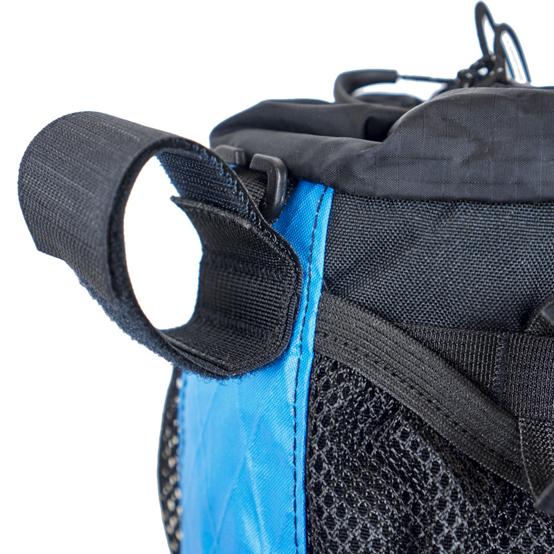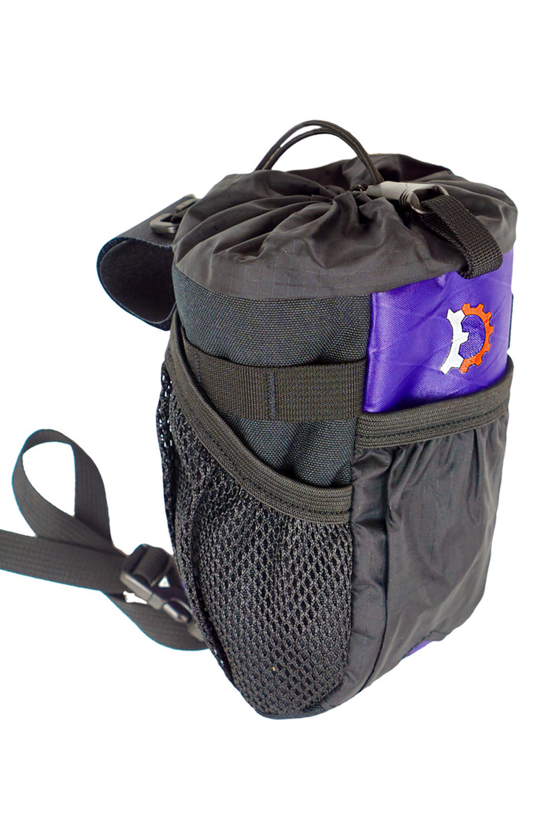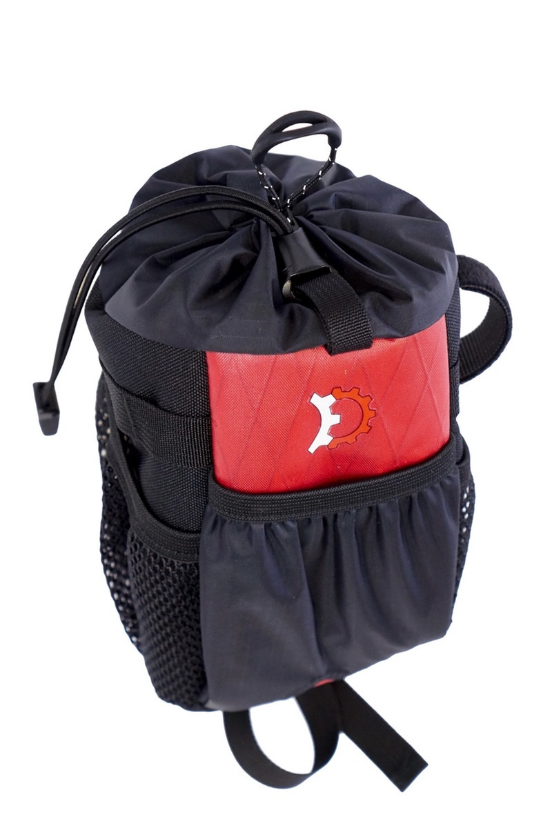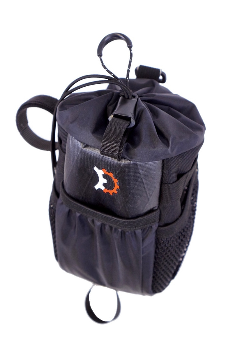 Ten years ago Mountain Feedbags started the entire category of stem bags. They've proven their worth on just about every major backcountry race and route that exists. As the name suggests, the Mountain Feedbag is an on-the go aid station for endurance riding. It offers ample food storage with fumble free one handed access via an innovative drawcord system. Slightly larger than the previous version, you can now easily fit your beloved 1L Nalgene bottle, camera lenses, and more. We've also added an additional outside pocket, leaving you with more space for wrappers, sunscreen, granola bars and other small items.