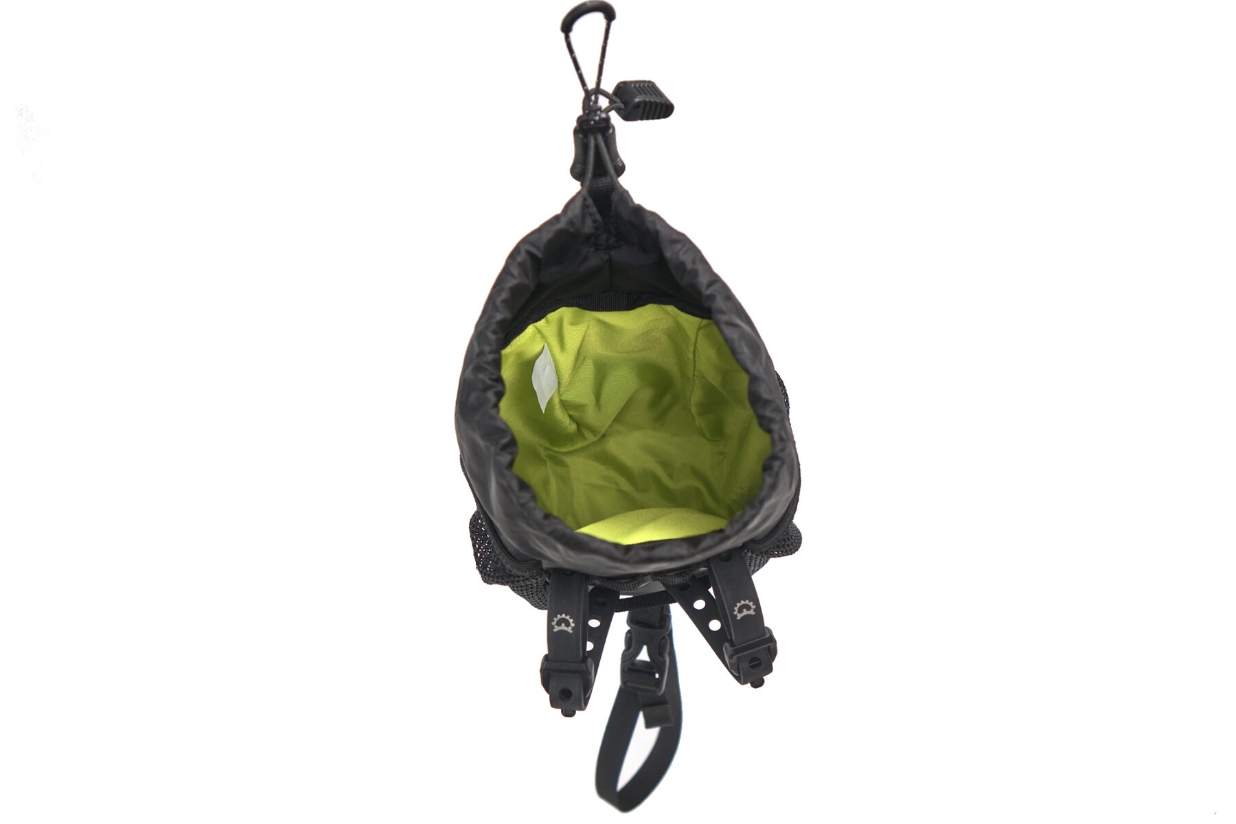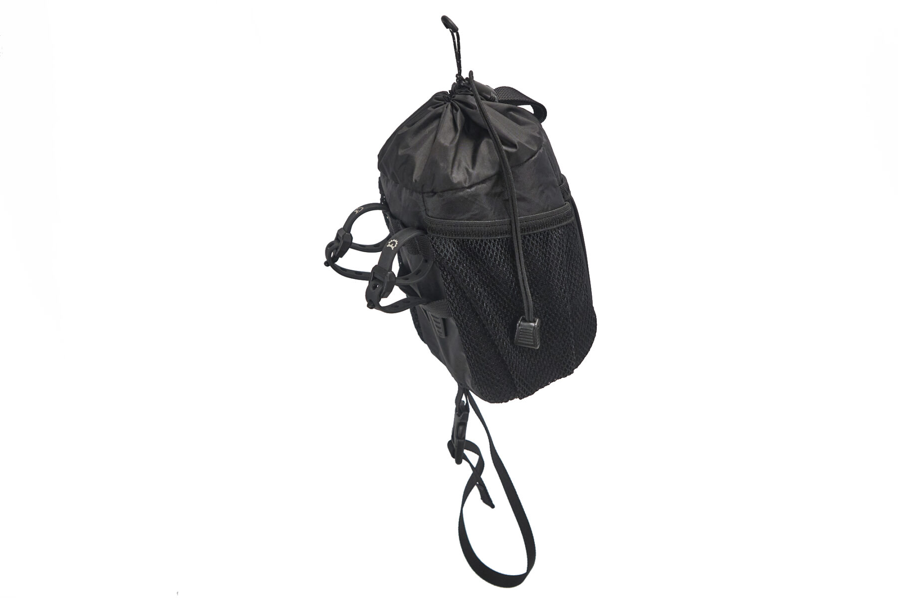 The mounting system features two TPU straps and a stiffening panel at the attachment point. A layer of closed-cell foam provides a non-absorbent, reinforced bag structure, which increases the interior volume without changing the exterior dimensions. Fit your beloved 32oz Nalgene bottle, a mirrorless camera lens, full-sized candy bars, sunscreen, wrappers or even a gas station burrito.