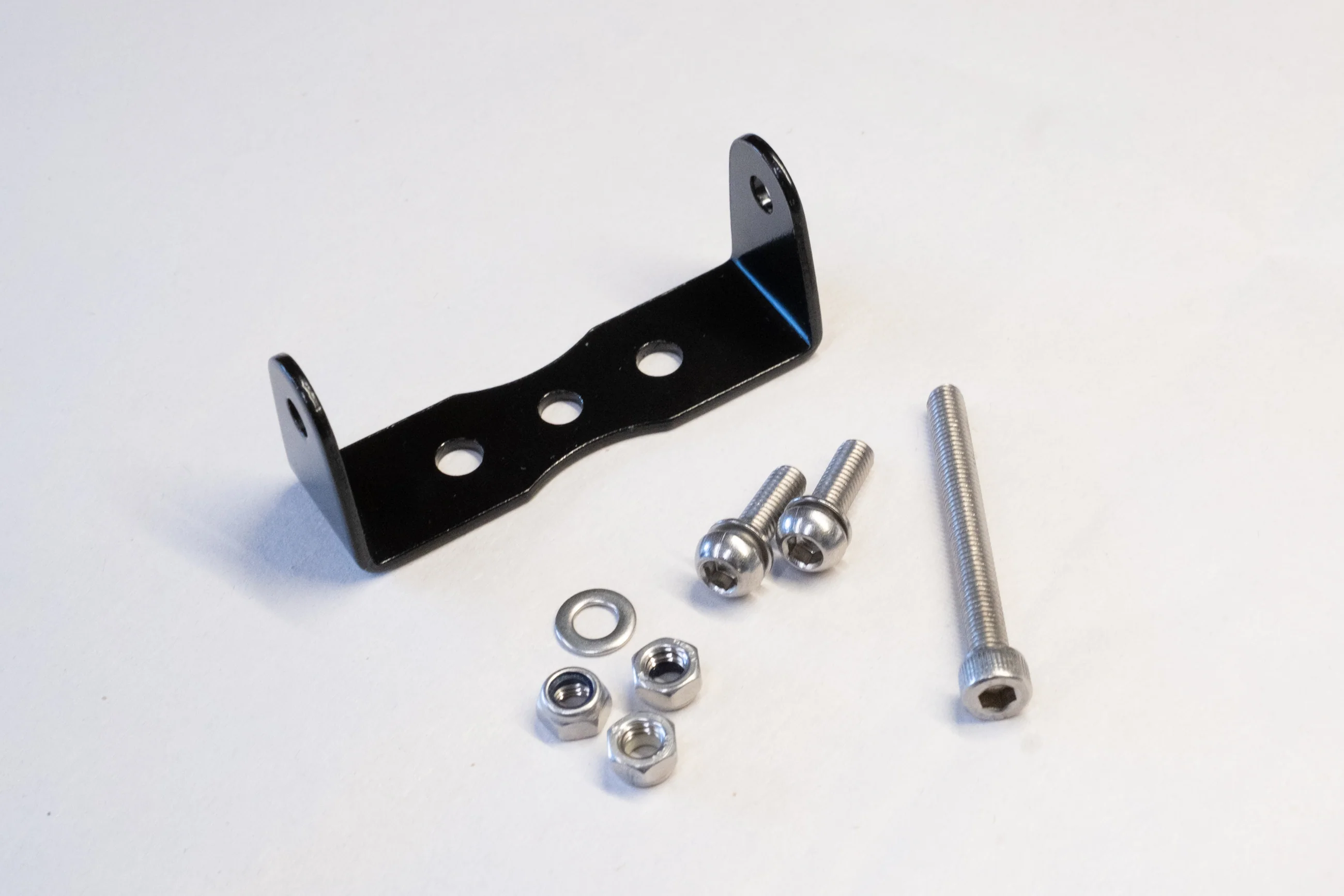 The adaptor is drilled for an M5 bolt for the fork crown, and includes an M5x45mm bolt (you may need a longer or shorter bolt depending on the thickness of your fork crown) and M5x16mm bolts for attaching our rack struts to the adaptor, as well as nylock nuts and washers.