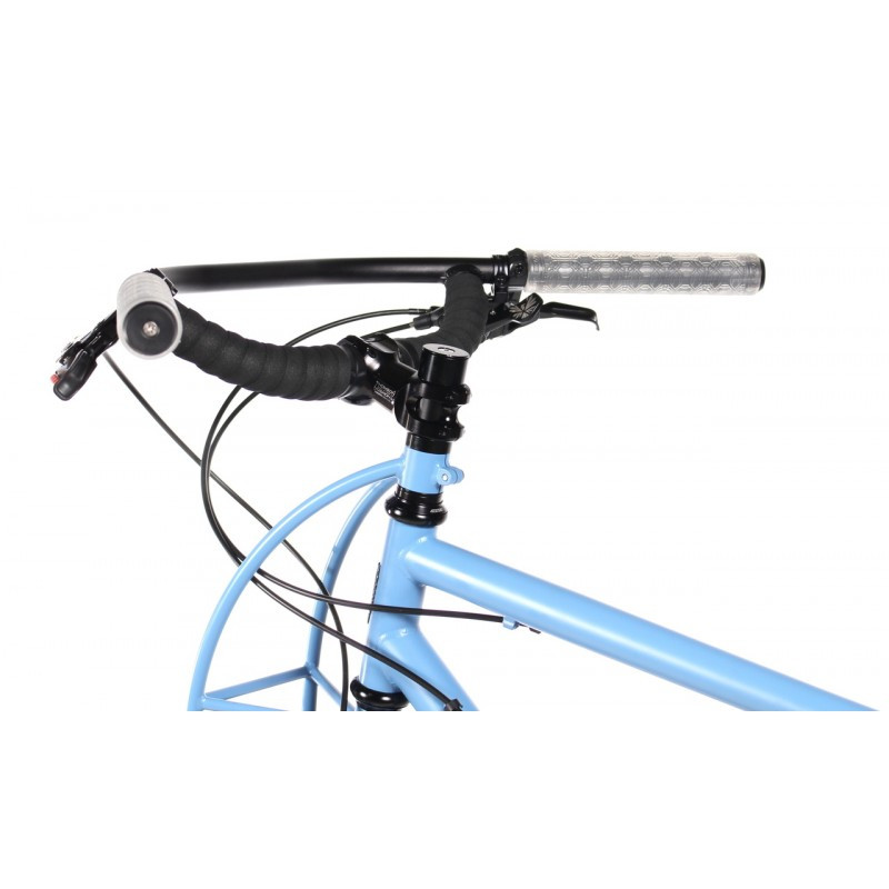 The Loop Aluminium H-Bar is the most popular H-Bar. If you're new to the H-Bar, this is the model that we tend to recommend first because its loop design has the widest range of hand positions, its aluminium construction gives the best value, and its 710mm width not only gives you the full range of positions, but allows you to cut it down to the original 660mm width (using the laser-etched cut guides) if you decide that you want something narrower. The cross bar on the Loop H-Bar sweeps forward to allow the levers to go behind the cross bar instead of in front. This gives longer uninterrupted hand positions and will allow trigger and grip/twist shifters to fit on the rearward extensions (unlike the original H-bar). The continuous front loop of the bar enhances stiffness and is good for additional aero hand positions and mounting lights, GPS devices etc. This bar provides comfort and power with an impressive weight. With the levers in the optimum position you get a wide range of hand and body positions, from fully upright at the ends of the grips, to a tucked aero position when resting your forearms across the crossbar and loop. In between these extremes, there are many unique and useful positions, making this a true multi-position bar because you'll actually find yourself using all of the positions! The rearward extensions allow extra leverage and a wider hand position - be it for comfort or power. All H-bars are for a 31.8 stem and the crossbar is now tapered and butted with a 31.8 mm clamp area. The grip tubes on the aluminum version are also butted for strength and weight savings. All H-Bars have a standard 22.2mm diameter grip area. Try wrapping the crossbar with bartape! You can wrap both the crossbar and loop (but it helps to leave a gap in the center of the loop to mount whatever gadgets you have), if you want to have the most hand positions! 525 grams for the 710 De Jones H-Bar sturen gebruiken twee soorten aluminium buizen. De SG versie (Straight Gauge) gebruikt buizen met overal dezelfde dikte. Voor de DB versie, Butted, gebruikt Jones buizen die richting het handvat dunner zijn dan in het midden. De DB versie is hierdoor +/- 150gram lichter dan de SG versie.