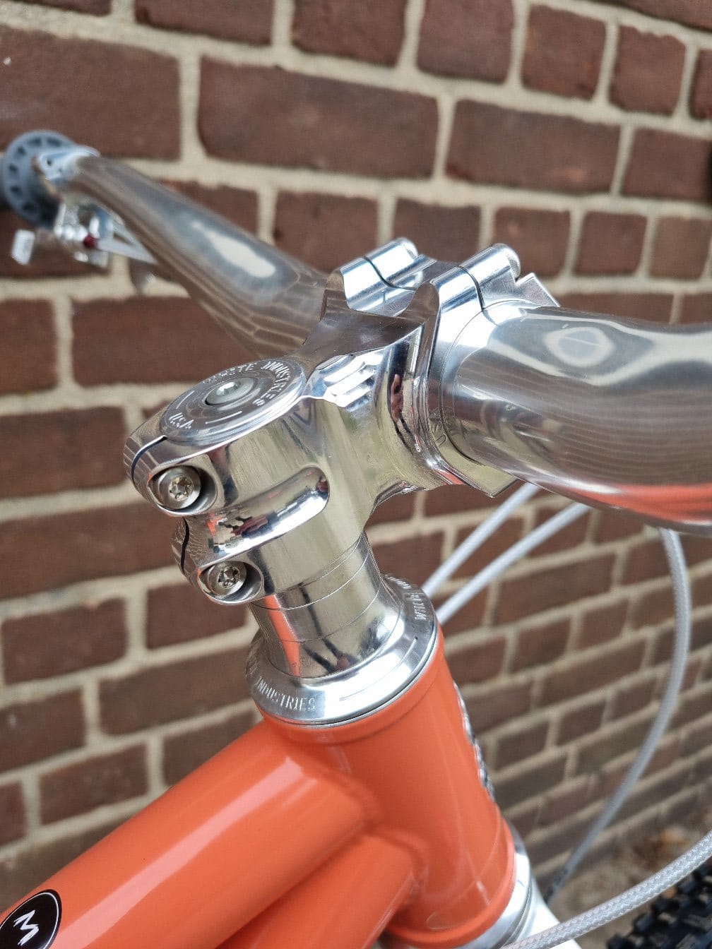 - Handlebar: Title AH1 MTB 35mm clamp 50mm Rise 800mm length in polished chrome Â