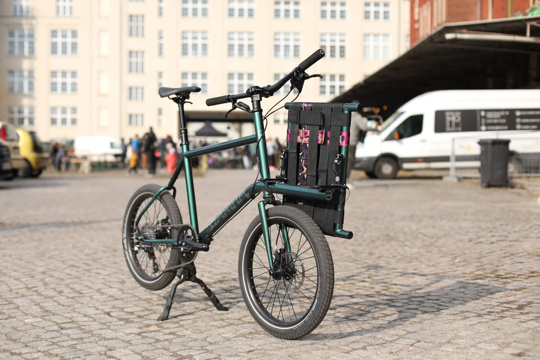 The Nano is a 2 in 1 solution for urban dwellers, the smaller footprint makes it easier to have a cargo bike in smaller, more cramped urban living quarters while the smaller wheels and shorter wheelbase encourages a fun & agile riding experience, without compromising the loading capabilities. With a smaller footprint the Nano also makes it easier to integrate your bike with public transportation and encourage multimodal transportation making it easier to ditch your car for even bigger daily distances by bike. The Nano is integrated with more standards from the Cargo & Mini-Max V3’s making more accessories available to the frame for instance the ability to add the Tilting Rack Bracket giving the option to make the footprint of the bike even smaller when parked.