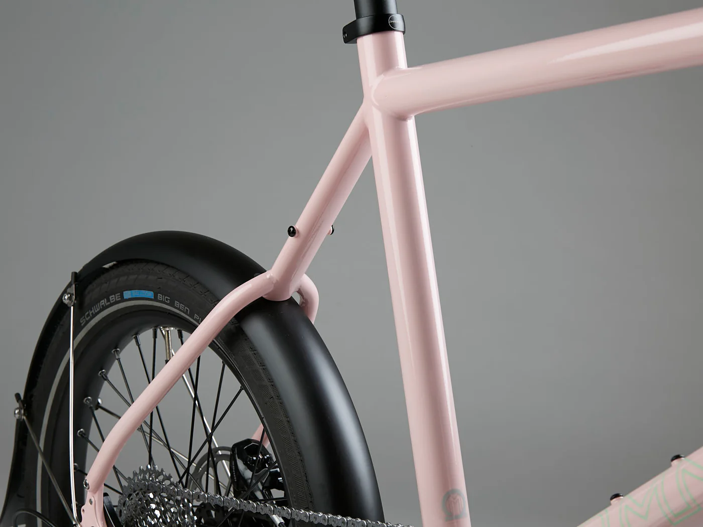 Designed around two 20” wheels with a 2.15” tyres and shorter wheelbase than our other bikes, this gives us a snappier ride and a small footprint for the overall bike – the smaller wheels also get you up to speed faster which is great for the more start and stop nature of urban riding.