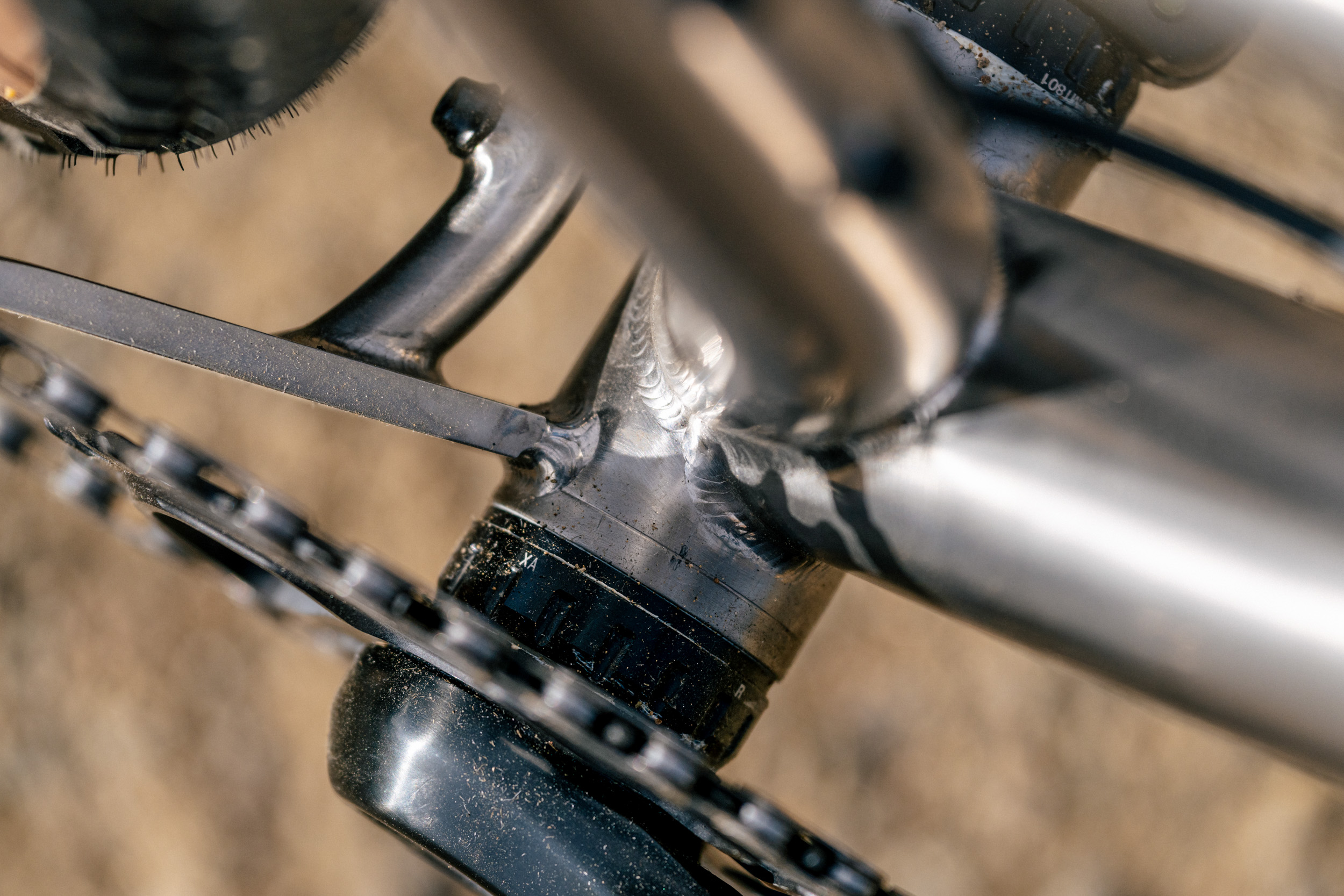 The front end is longer, and the chainstays grow as well, coming in at 465–482mm depending on where you set the Alternator plates. In its longest setting, the wheelbase hits 1169.5mm. The bottom bracket drop is massive, on paper, at 106mm. But when you look at the actual bottom bracket to ground height, it’s normal.